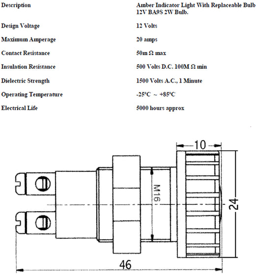 Green Warning Indicator Light 24V Pilot Dash Light Robinson K103/24