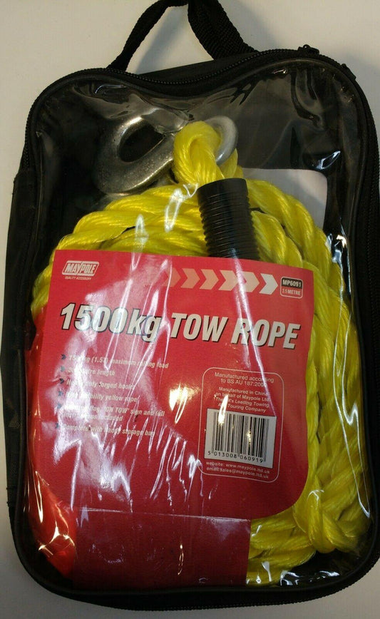 Tow Rope With Forged Hooks 3.5M Meters 1500Kg Breakdown Tow Strap Maypole MP6091