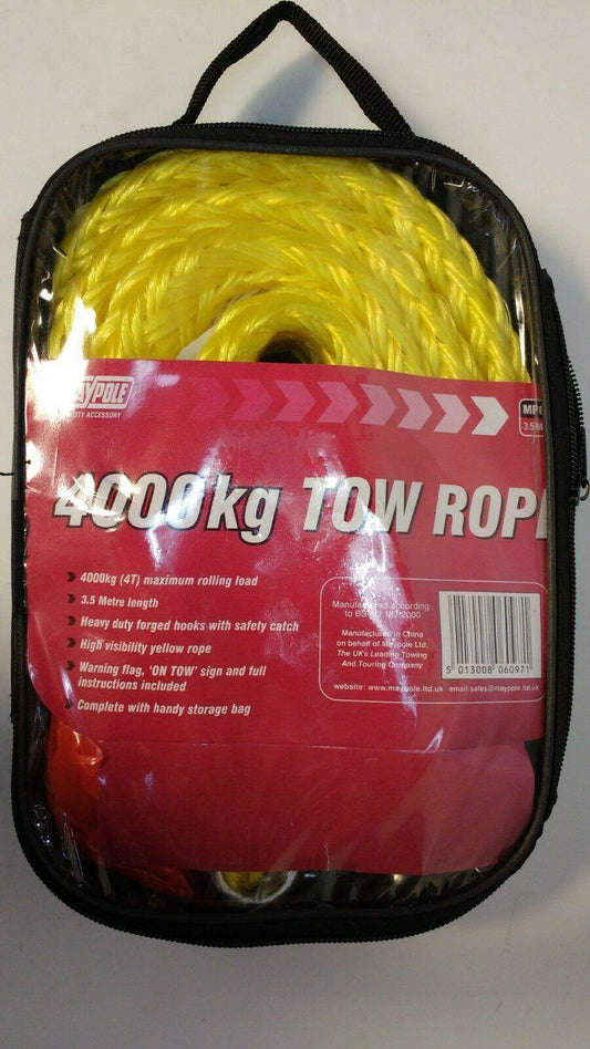 Tow Rope With Forged Hooks 3.5 Meters 4000Kg Breakdown Tow Strap Maypole MP6097