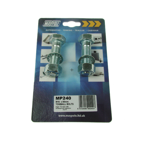 2 x HIGH TENSILE ZINC PLATED (8.8) TOWBALL NUTS & BOLTS M16 x 55mm MAYPOLE MP240